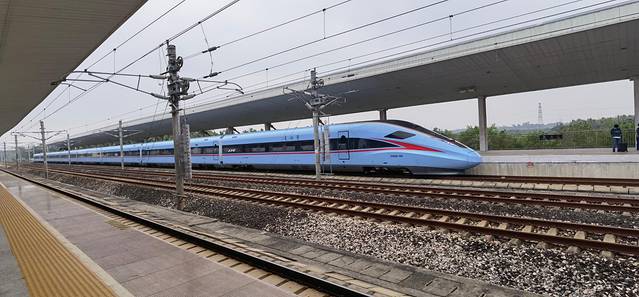 这是我离开琼海车站时拍的,海南的高铁,颜色是淡蓝色。