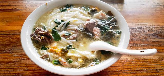 一碗猪杂汤粉,加一个蛋,11元。味道鲜美,猪肝不柴,火候刚好。推荐。当然就餐环境,就不要那么讲究啦。