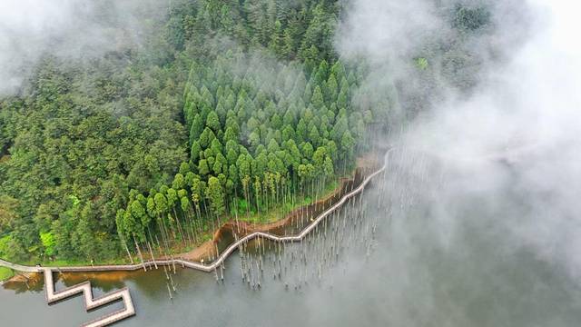 每年6、7月汛期湖水漫过路面,仿若宫崎骏电影《千与千寻》中一段与海水相连的水上之路,梦幻般的壮美,堪称中国最美水上公路。