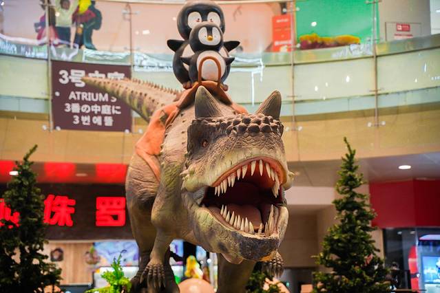没走多远就看到一个恐龙馆,旁边的小朋友一直在和妈妈撒娇想去恐龙馆玩。