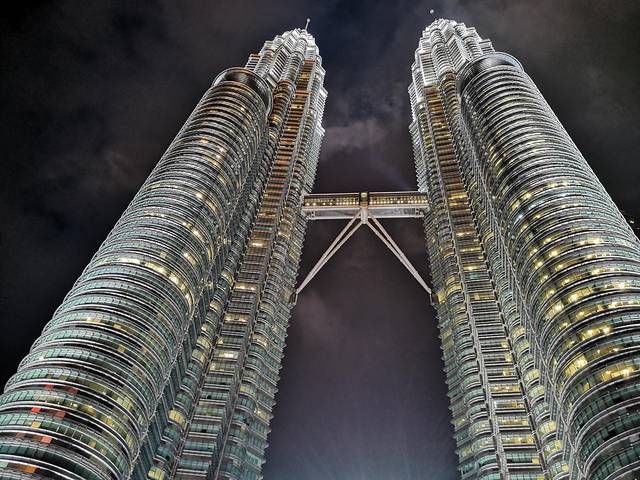 吃饱了,继续围绕着双子塔方向走去,晚上的双子塔真的金光灿灿。