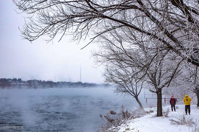 像雾凇这样形成的自然奇特景观,也只有在苛刻的条件下才能形成这样奇特的景观,当然雾凇在吉林是很常见的一个景色,但是冬天里的每一天,并不是都能见到这样的景观,最良心的地方便是推出了雾凇预报,从一颗星级到5颗星级来推测,可以看雾凇景观的推荐程度,这样的措施可以说是特别良心的了,我们的运气并不是太好,所来观赏雾凇的这几天只有一颗星推荐的,虽然这个时间点并不是观赏雾凇最好的时间,也没有看到十分壮丽的雾凇景观,但是在一星级的情况之下,还能看到雾凇这样遇冷后水雾在风力作用下呈现的景观,我们也是很知足的啦。