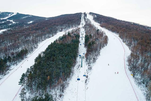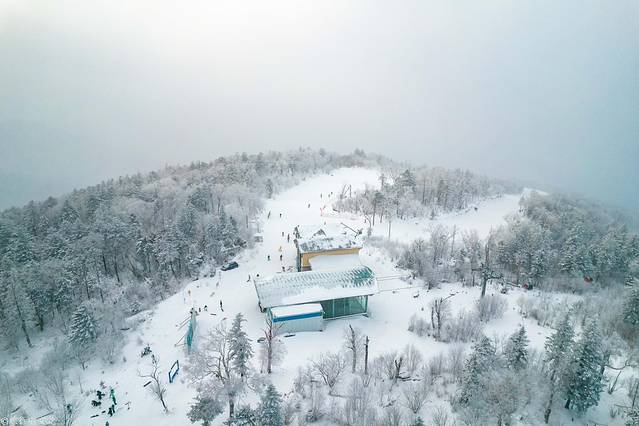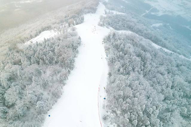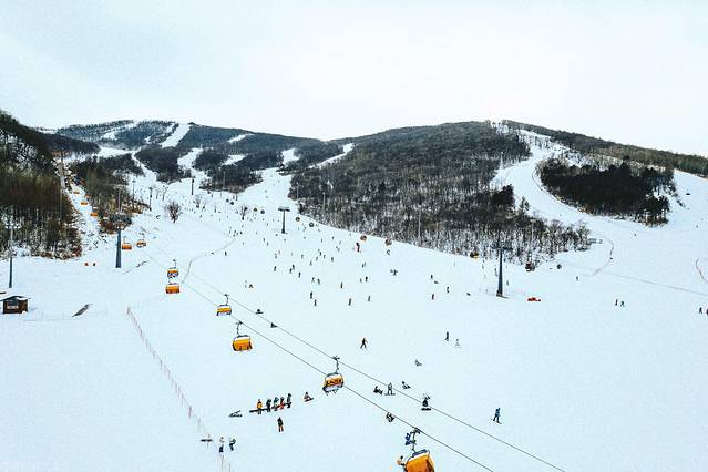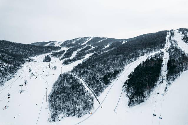 通过航拍可以看到,万科松花湖滑雪场面积很大,它含有初级,中级和高级雪道34条。全长有31公里,滑雪面积也是很大,一个镜头根本拍不到头,共有175公顷。空中还有7条载人索道。许许多多黄色和蓝色的座椅,像是姑娘头上的发卡,给这片雪地做了很好的点缀。雪场的主索道是由奥地利多贝玛亚提供的,采用世界领先的轿厢和恒温座椅设计,所以不管是安全方面还是舒适度,都很有保障。索道从山头连接延伸到山脚,我好想坐上轿厢,去好好感受这银装素裹的世界,去静心欣赏这山峦间的雾凇奇观,去欣赏滑雪运动员矫健的身姿,娴熟高超的技巧。