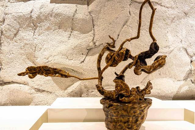 此外,在馆内我们还可以参观松花湖浪木根雕艺术展,特别具有吉林地方特色。什么是松花湖浪木呢?它们和普通树根有什么区别呢?早在30年代,松花江上游拦江筑坝,修建电厂,使松花江水位上涨,沿江林木被浸入湖中,经过常年湖水的侵蚀冲刷,日晒雨淋,才形成了今天的松花江浪木。它比普通树根坚硬很多,形状千姿百态。浪木根雕就是根据它原本的形态去雕刻的。这也便是浪木根雕的特点——七分天成,三分雕琢。艺术展展出了吉林市松花湖浪木艺术研究会会员雕刻的浪木根艺127件。你看它们,有的似船,有的似鸟,有的似人,有的似牛......我最喜欢这个女性人形根雕和龙凤根雕,真的特别精致,观赏性极强。