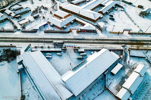 先晒一下第一天,在途中的航拍,自然景色,更能显示出东北冬天里的样子。