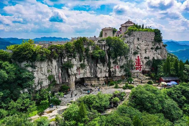 说实话,云门山并不是多么的风景秀丽,但是每一个来到青州的人却都想去这里看一看,仿佛没有去过云门山,就好像没有来过青州一样。云门山顶有一个巨大的寿字,号称天下第一寿,人无寸高,就是来源于此。我认为来青州爬云门山游玩的,百分之九十的人都是奔着这个“字”去的,这个巨大镌刻"寿"字是“寿比南山”典故的出处,该字结构严谨,端庄大方,坐南朝北,通高7.5米,宽3.7米,单是下部的"寸"字就高2.22米,为大个头的汉子所不及,所以在我们这个地方就有"寿比南山"、"人无寸高"之说。
