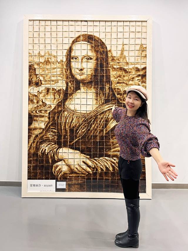我认真地把每个作品看完了。足不出户,就像跨越到了法国卢浮宫一般!还有一幅蒙娜丽莎面包画,价值100万元一幅。