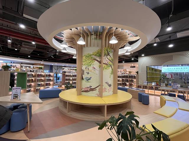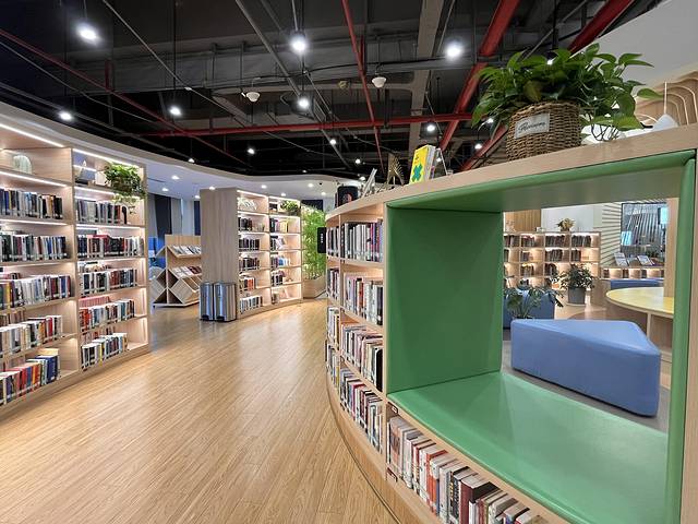 苏州工业园区北部市民中心图书馆,图书馆很大,建筑面积约1000平方米!图书馆定位于融书籍阅览、亲子互动、 文化交流、休闲娱乐、文创周边、24 小时图书室等功能于一体的多元人文生活空间。