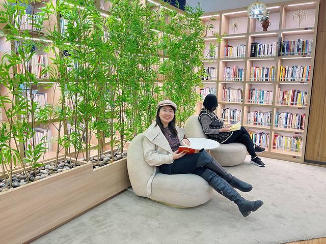 图书馆也有个咖啡吧台,价格也是很亲民。图书馆中央是环形的设计,还有的区域后面有一排竹林,坐着阅读,就像在大自然里一样心悦神怡。有的区域是单独的软座,可以靠着看书,也很舒服,独立性空间也很好。这里也是爱阅读朋友的宝藏地!