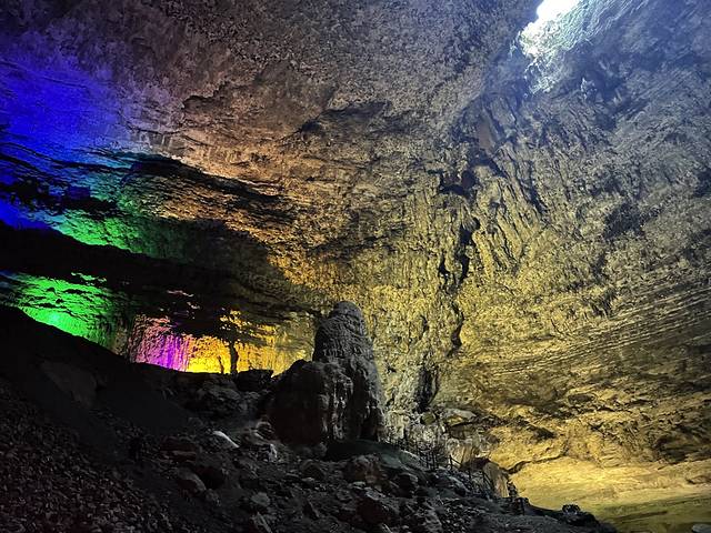 一个五光十色的地下溶洞,有四层对外开放,一定要去看看石林仙姿,手机都能出片,还可以去体验一下地下暗河。