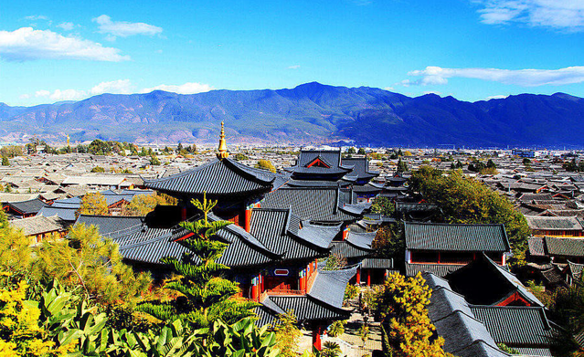 丽江古城位于云南省丽江市古城区,又名“大研镇”,坐落在丽江坝中部,始建于宋末元初(公元13世纪后期),地处云贵高原 ,面积为7.279平方公里。丽江古城有着多彩的地方民族习俗和娱乐活动, 纳西古乐 、东巴仪式、占卜文化、古镇酒吧以及 纳西族火把节 等,别具一格。丽江古城体现了中国古代城市建设的成就,是中国民居中具有鲜明特色和风格的类型之一。