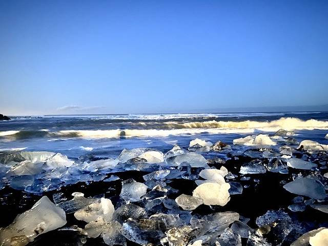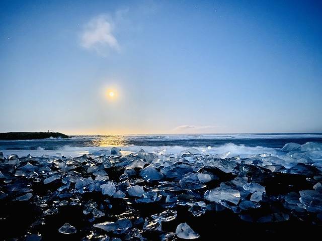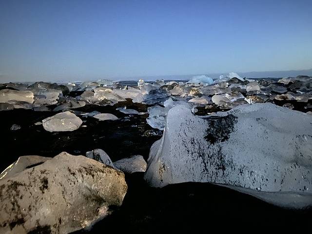 由于蓝冰洞的行程拖的有点长,回程的途中还装备过程中耽误了一些时间,直接造成我们赶到钻石沙滩时候基本上已经没有天光了。所以钻石沙滩也只是匆匆一瞥,没有时间好好的走走拍照了。这几张机乎没有天光的照片我也是尽力了,不会修图的我默默的路过….