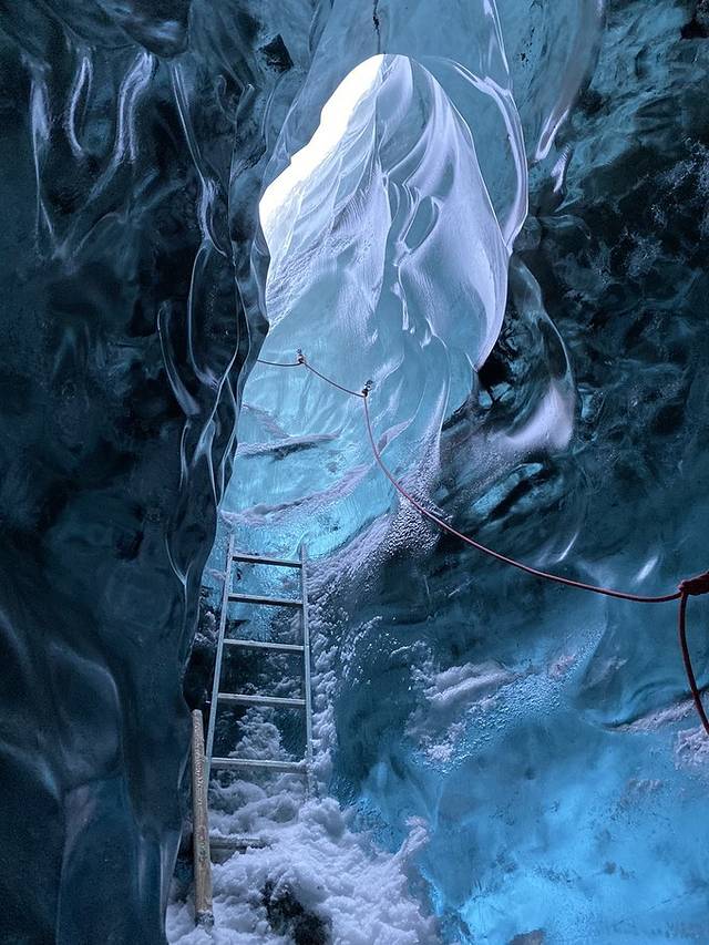 蓝冰洞一般位于瓦 特纳 冰川,是冰川融化水从冰川底部流淌形成的。瓦 特纳 冰川因为气候原因每年都在不停的移动和消融,预计150年就会完全消融掉。蓝冰洞不能自己直接去,需要向导引导,直接在万能的淘宝预定即可。集合地点一般都在杰古沙龙冰河湖停车场。
