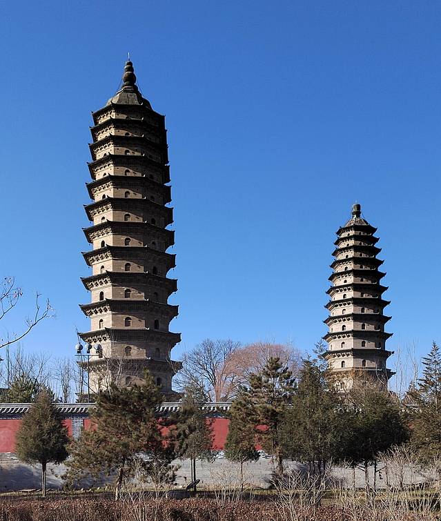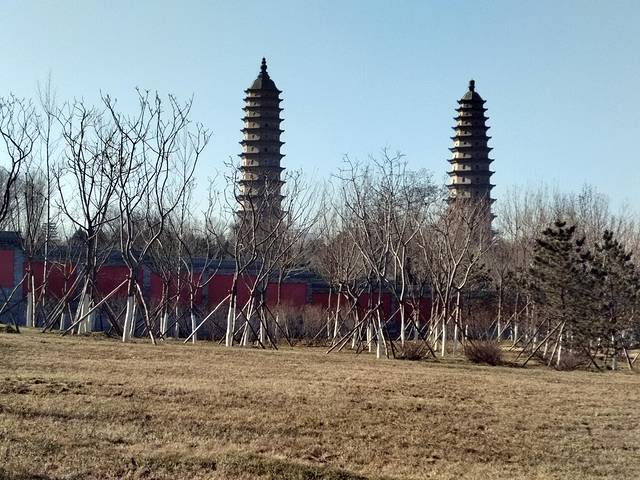 寺庙和后面的双塔(视角关系两塔重叠成一个塔了)