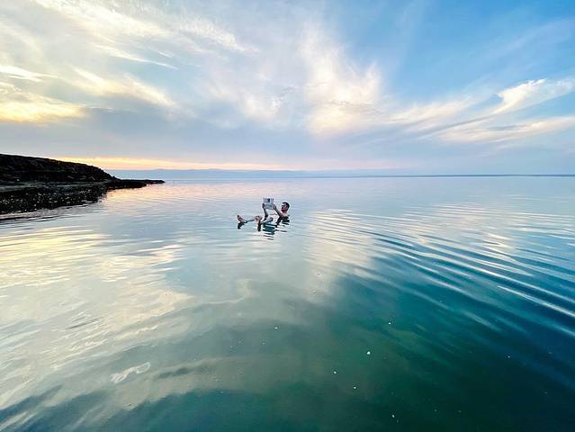 死海...实在是太咸啦,漂着倒是很好玩,不过千万、千万、千万不要脸朝下,脸部皮肤一碰到海水就会很痛呢,海水进入眼睛就麻烦了