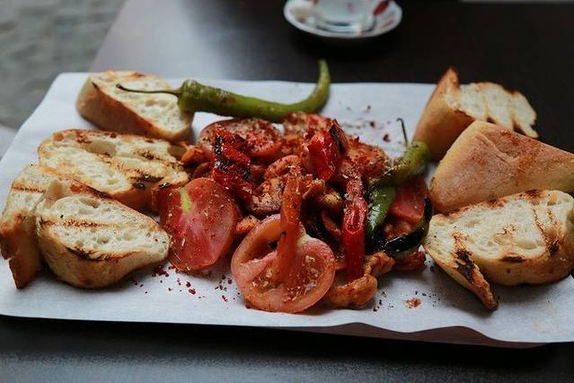 找了个看上去很和善的大爷的小店买了份烤肉,份量挺足,这一份才7 里拉 。。