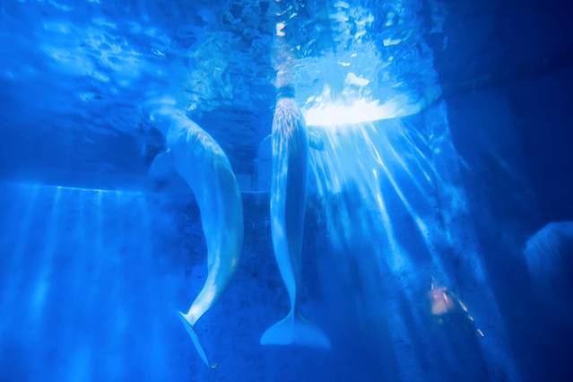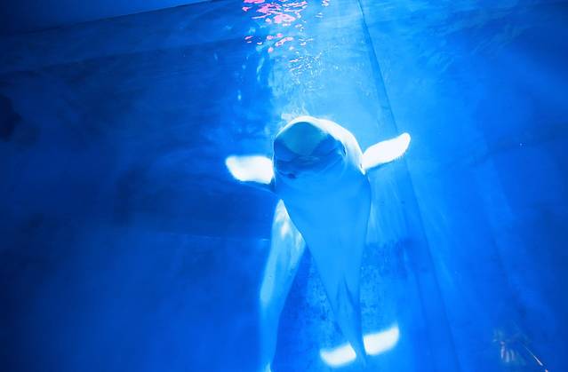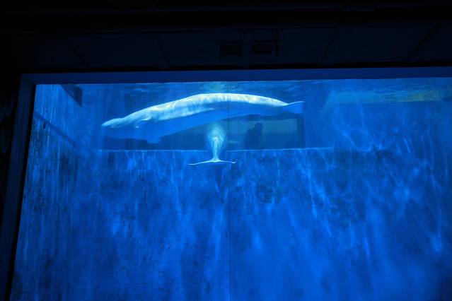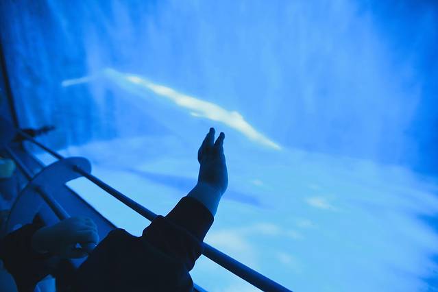 当我得知在极地馆能看到白鲸表演的时候,并没有太多概念。然而当我真的与白鲸,米拉和尼可拉只隔着一面玻璃,近距离看着他们表演的时候,惊喜万分。