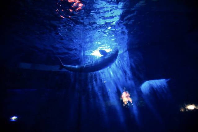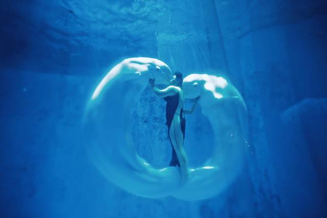 他们的表演有一个很好听的名字“海洋之心”,堪称世界首创极地白鲸水下表演。表演时间:每天4场,10:00 12:00 14:00 16:00,每场表演半个小时左右。表演者和白鲸游刃有余的互动,完美的展现海洋之心。相信一定训练了很多次,还有女驯养师,真的很不容易。