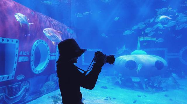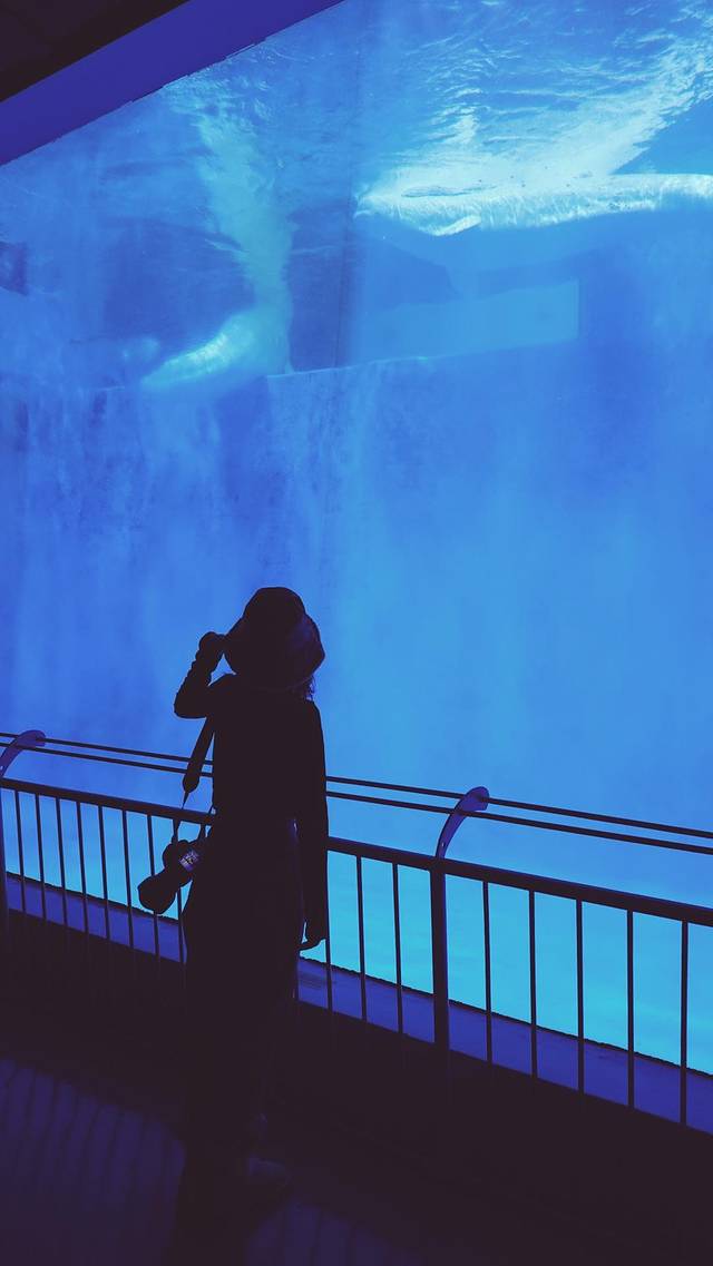 “世界是一个巨大的抓娃娃机,隔着玻璃我只想得到你。”在极地馆里面,居然找到了浪漫的气息。极地馆内最适合拍照的地点就是在大大的玻璃前,拍剪影,超美呀。动作幅度可以大一些,戴帽子凹造型💕