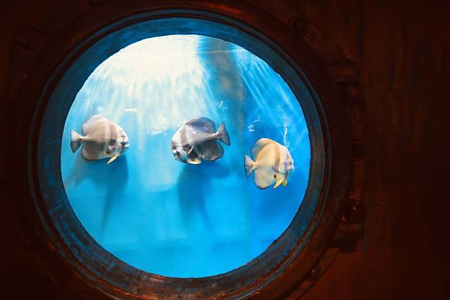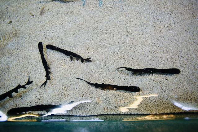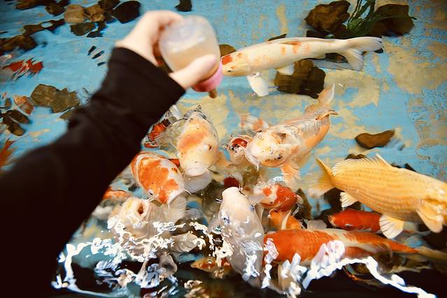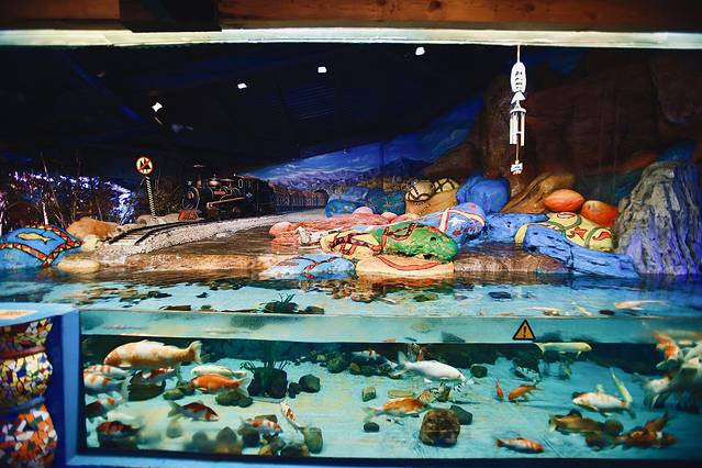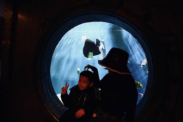 检票之后首先看到了不同种类的鱼儿们。有淡水鱼,鲟鱼,鸭嘴鲟,彩鲫,等,可以自己买鱼饵投喂。鱼饵的容器十分可爱,是奶瓶形状。15元一份,可以玩好长时间哈。⚠️这里请注意,有的鱼是有毒的,看好指示牌,安全第一。还有牛角,魔鬼鱼,鹞鱼,很多都记不住名字了,真想都搬回家养。