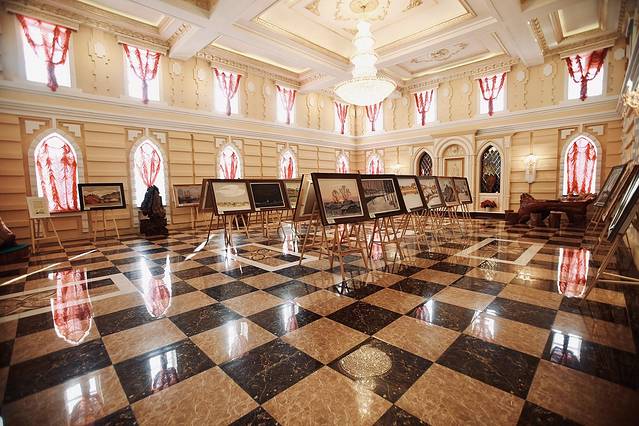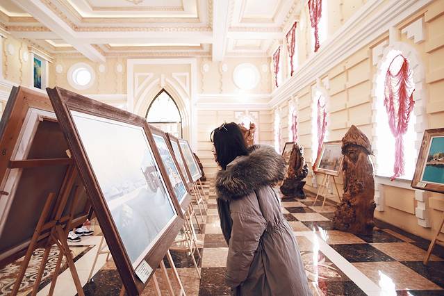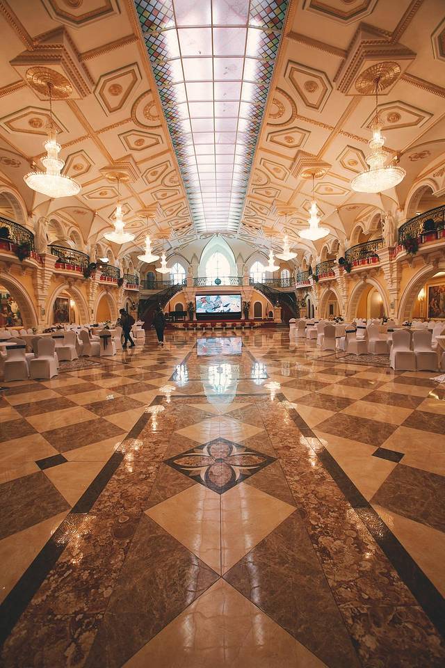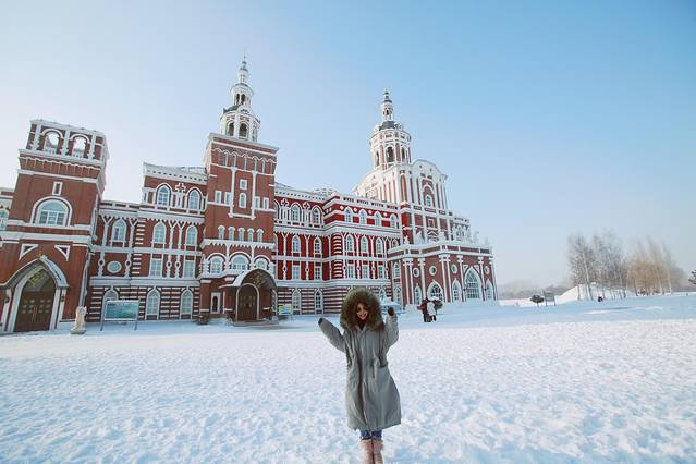 伏尔加庄园满满的俄罗斯文化,主要建筑有彼得洛夫艺术宫,圣尼古拉教堂,察里津诺堡,还有俄罗斯表演。路线是从彼得洛夫艺术宫,一路沿线走就能走到出口。彼得洛夫里面有作品展出,还有一个金碧辉煌的大厅。顶楼可以做雪圈滑下去,我!不!敢!只是上去看看。