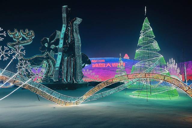 这个规模很大的灯展,位于哈尔滨融创万达茂旁边,世茂大道99-1号。公共交通,35路公交车(万达主题乐园站步行255米)。门票:75元。通票。开放时间:15:00-21:00,20:30之后停止入场。建议游玩时间:2个半小时。