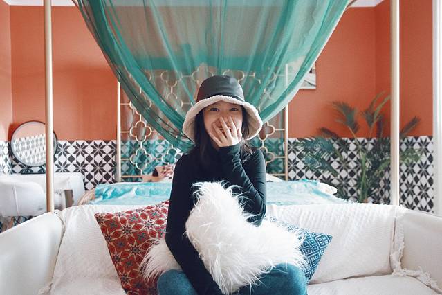 第二晚是我自己住,选择了一个民宿。装修风格是摩洛哥风,好看的床和墙纸,细节处也很好看,有很大的投影。位置在东升江畔小区里面。300元/晚。优点是拍照很好看。只是房间消毒水味道太浓,卫生需要改善。