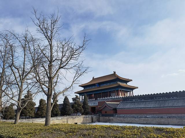 1.31风大天寒,109路下车,就看见故宫北门——神武门矗立眼前,在结冰的筒子河与支棱的银杏树相衬托,还是那么威严气派。