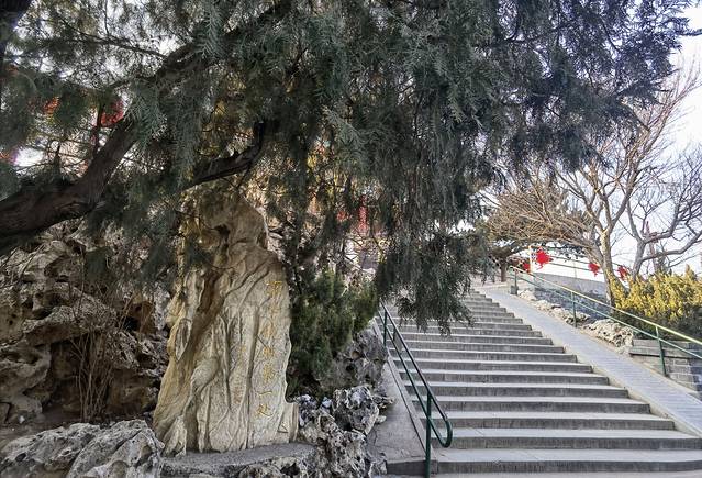 进园之后转而向西,走不几百米从山脚曲折而登。一般登景山的路线是从东面,因为在春节不想经过“明思宗殉难处”(我小时候还叫“崇祯皇帝自缢处”,现在用了敬语)。