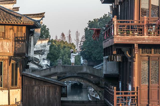 只有在诗词中才会出现的风光居然在乌镇随处可见,砖木结构的老房屋与西市河如此和谐的在一起,构成绝美的画卷。这般风光,怎能不欣赏一会儿呢?