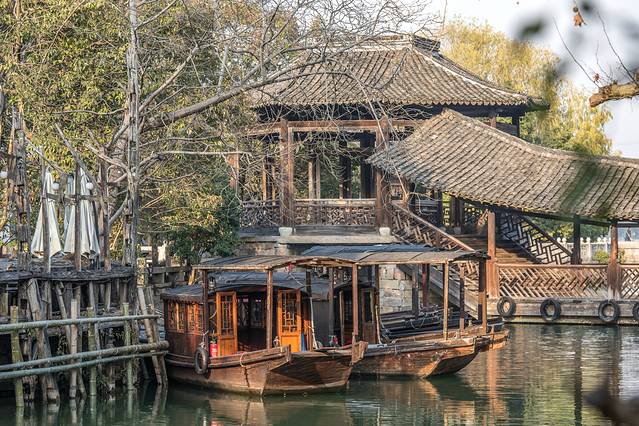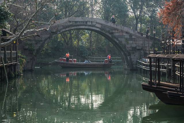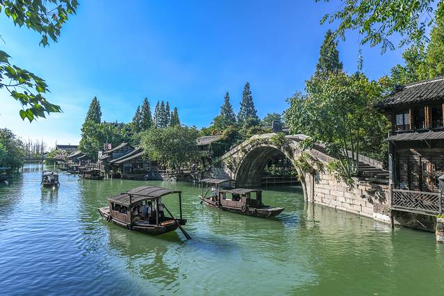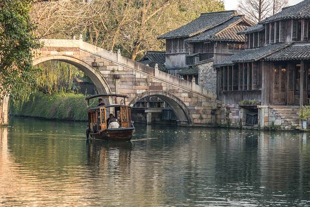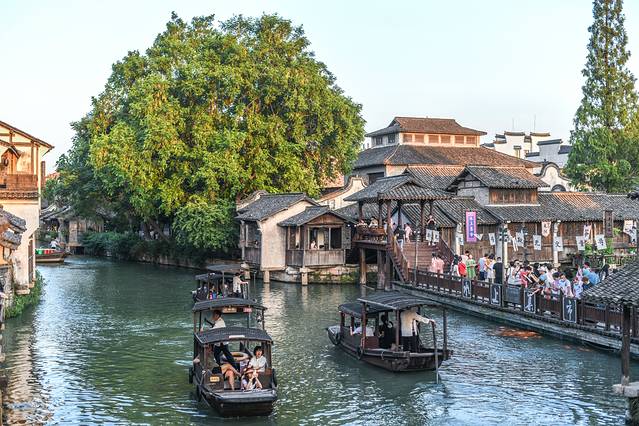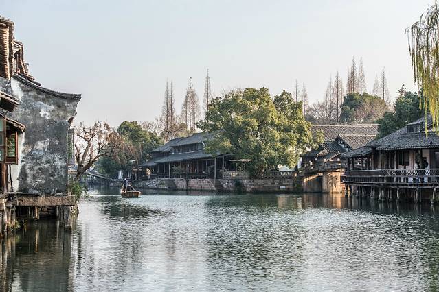 桐乡西市河以自西向东的流向贯穿乌镇的西栅,其分支众多,涵盖乌镇所有的街道、房屋以及石码头,犹如从水的世界漂浮而出。荡舟乌镇将畅游水乡古镇的旅行变得如此诗意,身在船只上欣赏两岸古镇风光,何其乐也?