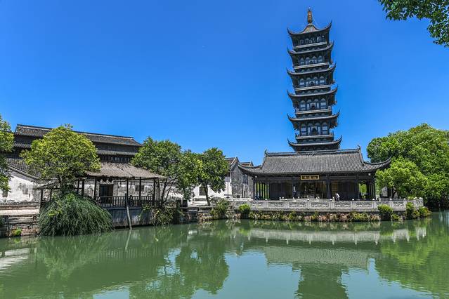 西市河与京杭大运河分界点就是始建于宋代的白莲寺塔,在西市河的倒影下也成了一幅画卷,美不胜收!你们喜欢这样的乌镇风光吗?