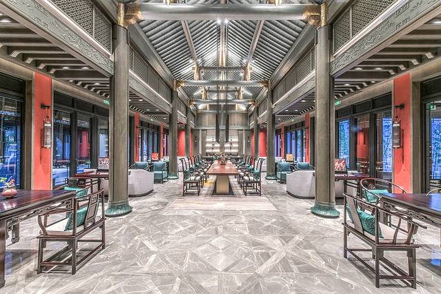 高端大气且上档次的内部环境彰显出西方时尚与中式古风的精髓与艺术,颇具韵味!在这里就餐会不禁想起近代时期乌镇富贵人家的高端生活。建筑摄影控的山野君看到这么漂亮的主题餐厅,岂能忍得住不拿相机拍照记录这些美好事物呢?