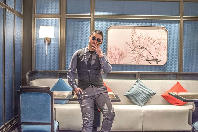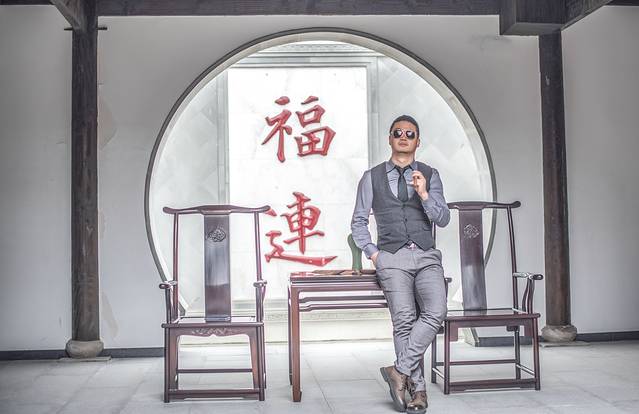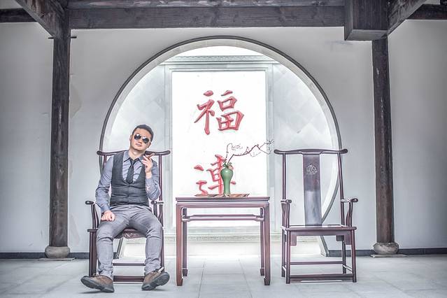 两个室内大厅的中间还有一处室内露天休息处,这里是可以提供抽烟服务的场所。在中央位置有一个很显眼的繁体字“福连”,这是古代江浙一带生意人的祈福词,据说做生意的人坐在这里特别旺财,不管真假坐上去拍个照就好了。坐在太师椅上的山野君,祈盼来年会更加顺利,生意方面再上一层楼,疫情早日消散。
