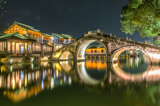 夜游西栅可以欣赏到各种诗意般的风景,随便找一座石桥站上去欣赏河面上的夜景,都会让你沉醉不知归路了。由于西栅景区较大,山野君建议大家从傍晚开始游览,最好是在西栅里面住宿一晚,深度感受一下西栅的无限美好风光。