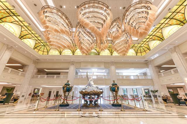这不是在英国也不在美国,而是在我国浙江县级市桐乡市高铁站旁的一家酒店,它以16世纪欧洲时尚风格为主题的宴会厅,格调高雅的环境惹人爱。山野君有幸下榻于此酒店,发现这般大气无比的内部结构,自然忍不住向各位分享。