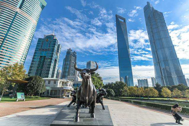 陆家嘴中心绿地有一处牛的铜雕塑,与摩天大厦形成对比,有着繁华都市的韵味。这座城市公园不仅环境好,而且观景视野佳,是欣赏上海这座大都市的最好去处。