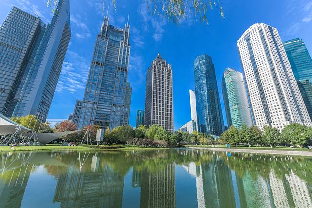 在发展金融与贸易的同时,上海也非常注重生态保护与人居环境,在土地资源极为稀缺的陆家嘴中心腾出空间并建造陆家嘴绿地公园。山野君天生运气好,当天的拥有绝佳的通透性,陆家嘴绿地公园四周的高楼大厦像巨人一样屹立着!