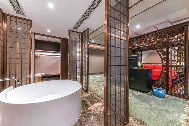 套房分为商务欧风与中式复古两种房型,如果是爱人一起的话可以优先考虑中式复古床的房型,入住在这里让情侣人更加有乐趣,你们觉得呢?