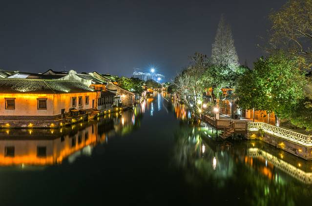 受建筑结构与河流走向的影响,江南运河支流之一的西市河两岸全部都是整洁的房屋与桥梁,夜晚灯光的装扮下非常壮观而漂亮,不得不说江南第一水乡果然不是吹嘘的!