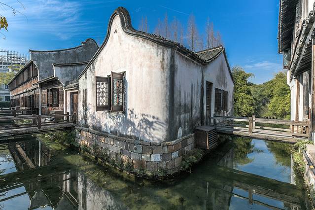 在很多人看来古镇都是千篇一律的古色古香,到了乌镇西栅才发现古镇也可以有诸多时尚建筑。乌镇美术馆与古码头再次形成对比,让人领略一下古今建筑相融合的无限魅力。
