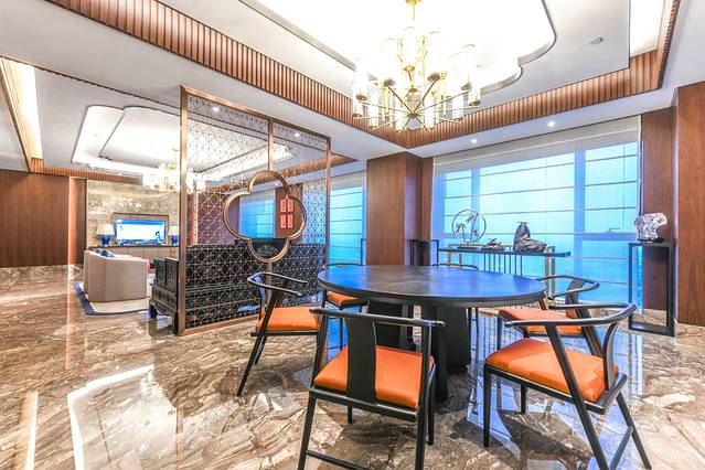古色古香的外观与典雅时尚的内厅形成对比,让人耳目一新。从景区门口乘坐酒店的电瓶车抵达酒店后推开大门即是这般颇具艺术感的大厅。这般环境太赞了,不知道能胜过多少家顶级奢华酒店的大厅气场。