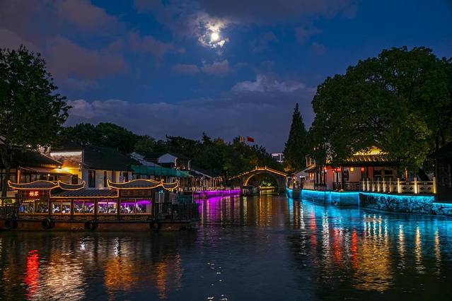张继的诗枫桥夜泊名扬海内外,当晚上再次来到这一舫小舟上时,仿佛穿越回盛唐之时。