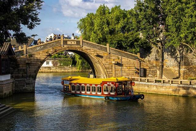 枫桥景区在京杭大运河和枫江之间,在这里,可以体会诗人张继江枫渔火的心情。