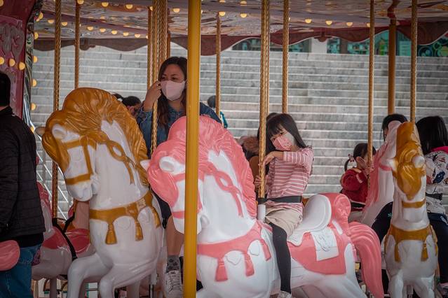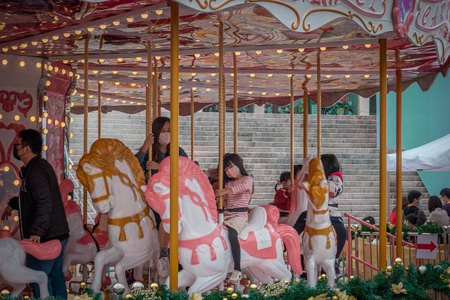 哇,还有这么可爱的粉色旋转木马,前一次看到都非常高兴的。