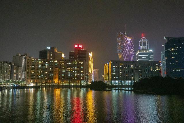 【雅文湖畔璀璨的夜色】在灯光的照射下,澳门真的像披上了一层迷彩,这样的澳门你爱了吗?