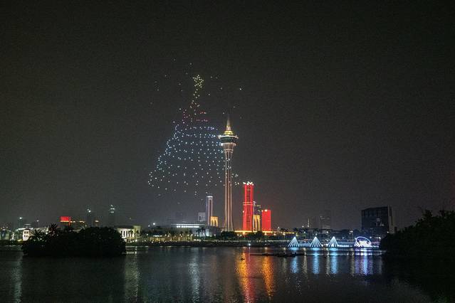 由旅游局首辨的“翱迸澳门无人机表演盛会”将于12月举行,与2021澳门光影节同期绽放。10个场次的无人机表演于12月4日、11日、18日、20日及25日晚上7时正和9时45分在南湾湖举行,5个晚上有不同主题演出,每晚两场次表演的内容相同,市民和旅客可选挥合适的场次前往南湾湖区及雅文湖畔观赏。每场表演使用无人机300架次,时长10至15分钟。