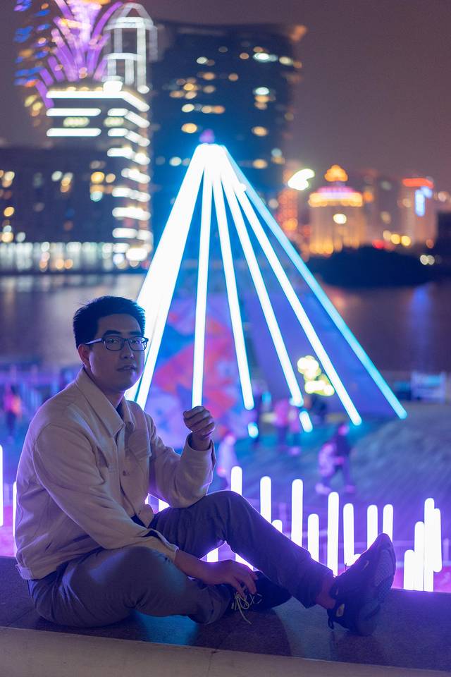 来到这里不仅看到了非常漂亮的澳门半岛夜景,还看到了很漂亮的湖畔灯光装置。