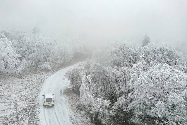 当原始森林披上一层厚厚的雾凇,怪树林仿佛蒙上了一层面纱,让怪树林充分的体现出了它的美,就像奇幻森林。