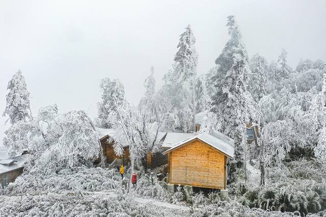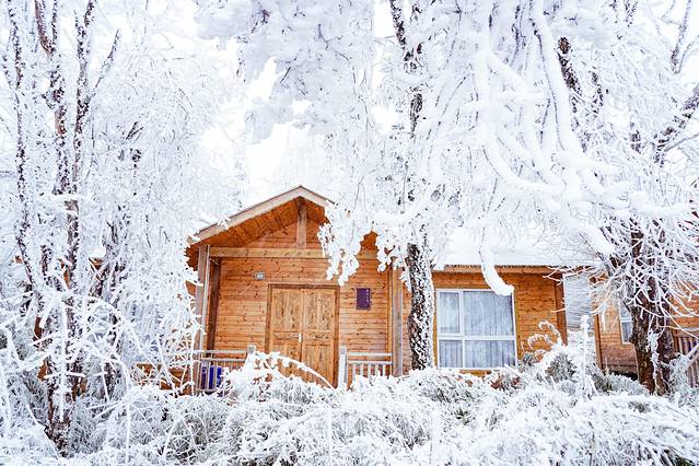 冬天这里真的太美了,山上的雾凇和小木屋,仿佛置身北欧的童话世界,天气好的时候,直面贡嘎雪山和云海。